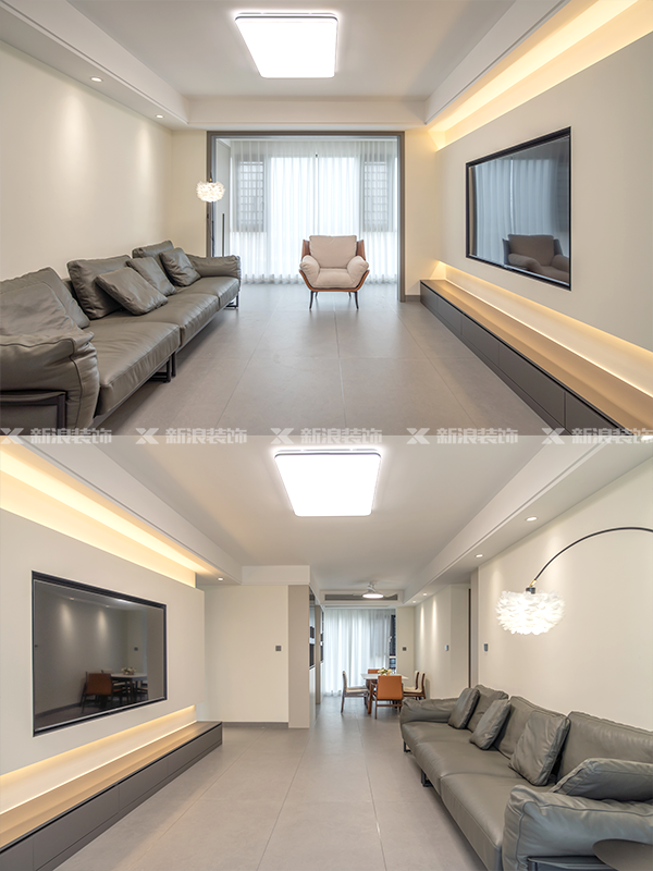 極簡(jiǎn)電視背景墻、一門到頂高端定制柜展現(xiàn)整屋高級(jí)感