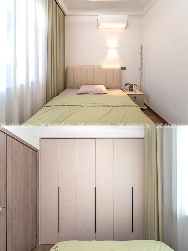 部分墻面做護墻板,與定制柜、房門顏色、材質、造型一體化,顯高級。