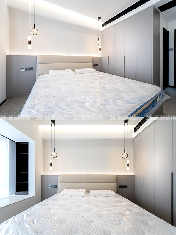 主臥無主燈設計加床頭墻板裝飾舒適又低調