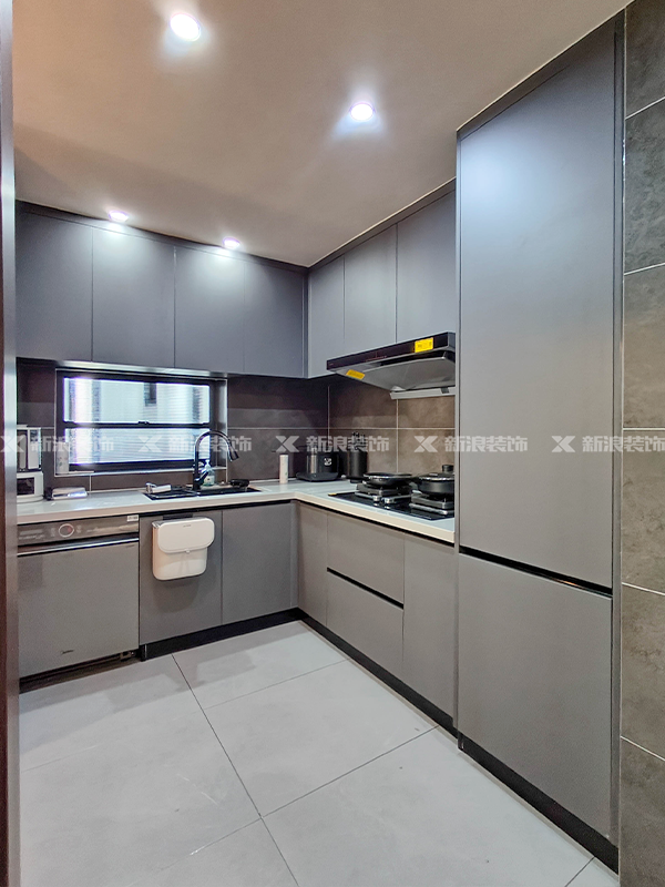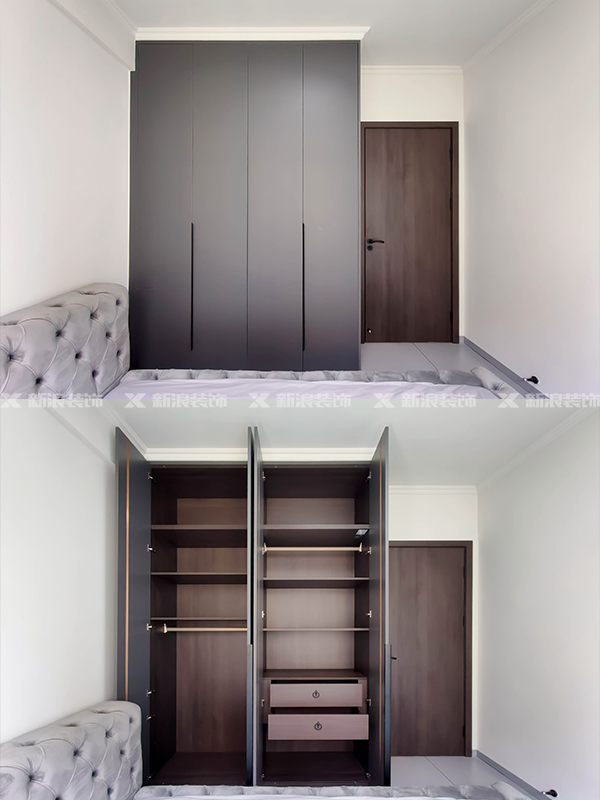 在新浪裝飾業主實現了房門、護墻板、定制柜、櫥柜、浴室柜實現同顏色、同材質、同款式、同造型一體化設計。