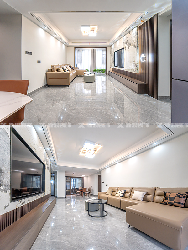 全屋定制衣柜、房門等等,搭配巖板電視背景墻,大氣不過時。