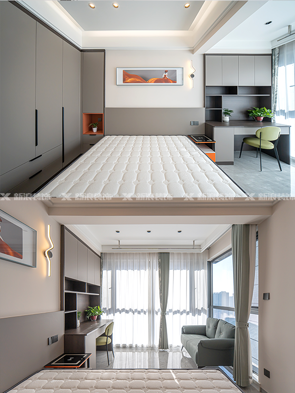 臥室做雙眼皮吊頂、氛圍燈,見(jiàn)光不見(jiàn)燈,營(yíng)造舒適溫馨的休息空間。