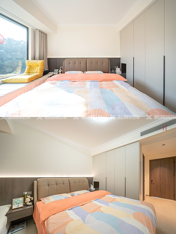 臥室做衣柜書桌一體化設計,充分利用空間,滿足收納需求