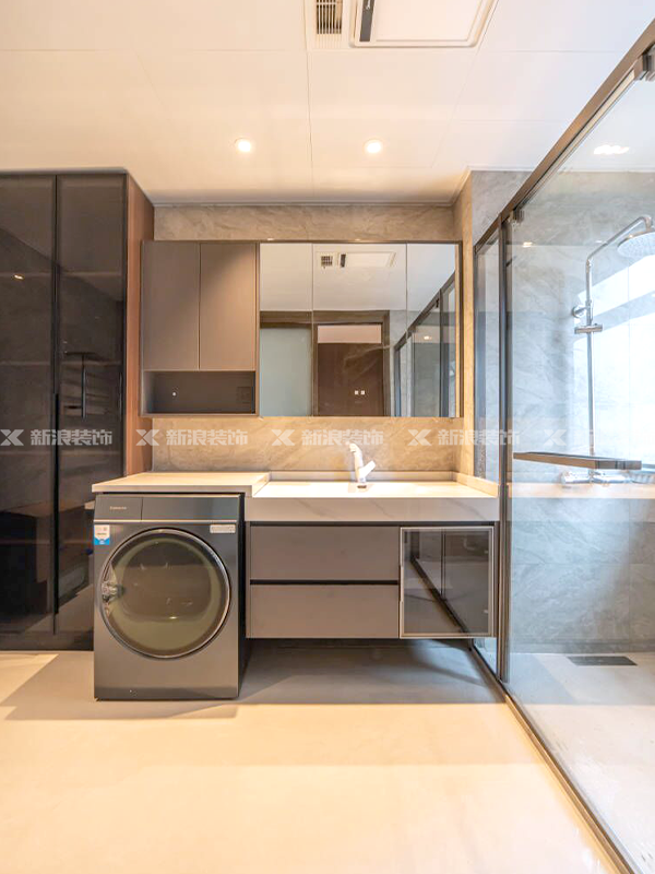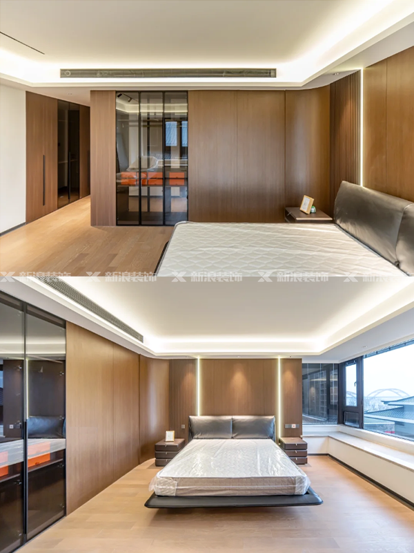 主臥衣帽間搭配雙面玻璃柜門使空間更顯通透靈動