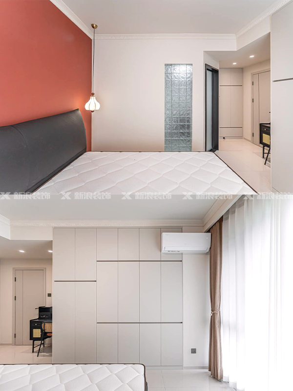 定制顏色:煙熏尤加利+象牙灰,臥室膚感象牙灰+橙紅背板