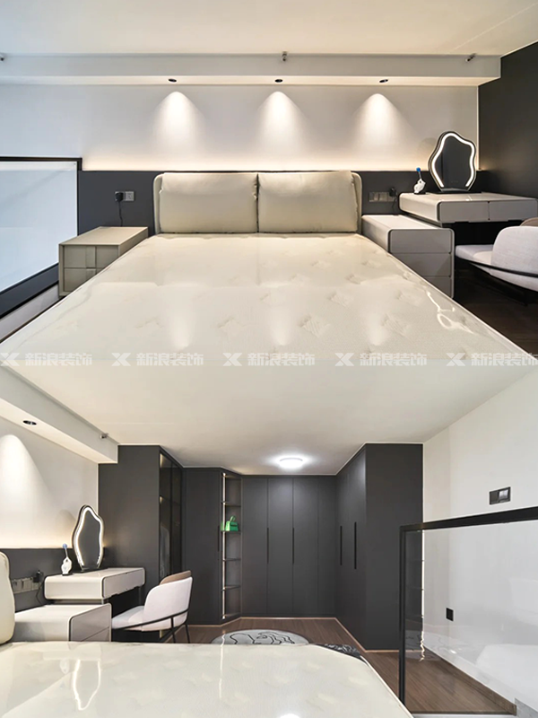 裝修設計案例分享,復式樓裝修,家裝裝修,復式設計,全屋設計,LOF,Loft公寓,現代風格裝修,半搭,主臥衣帽間,床頭墻板造型,吧臺設計,餐邊柜設計