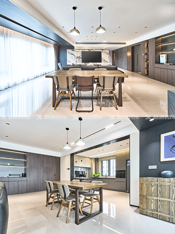 客餐廳做全開放式的布局,實現了視線的延伸,放大了大戶型的縱深感。