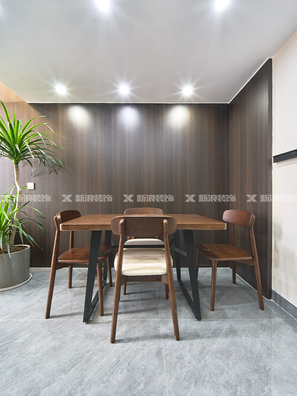 大面積的深色木紋墻板,配合深色的亮面地磚,更顯質感