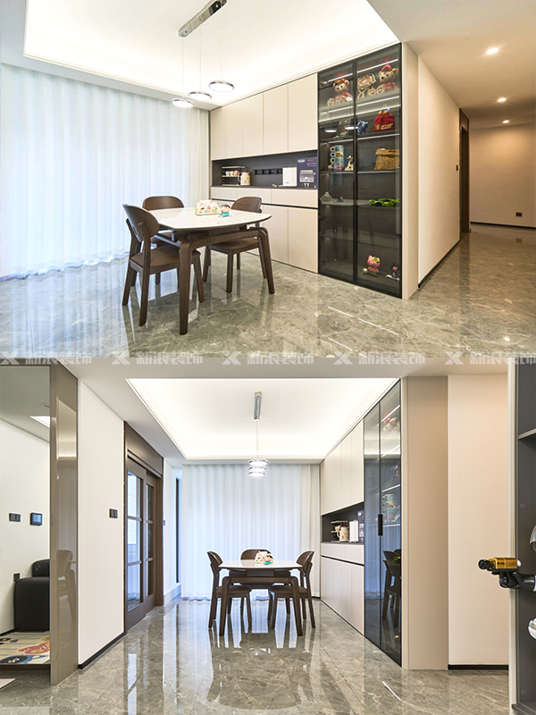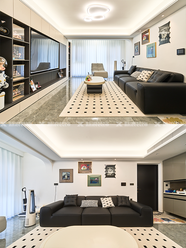 柜子顏色采用經典黑白灰配色,搭配擺設軟裝,讓空間有更多可能性!