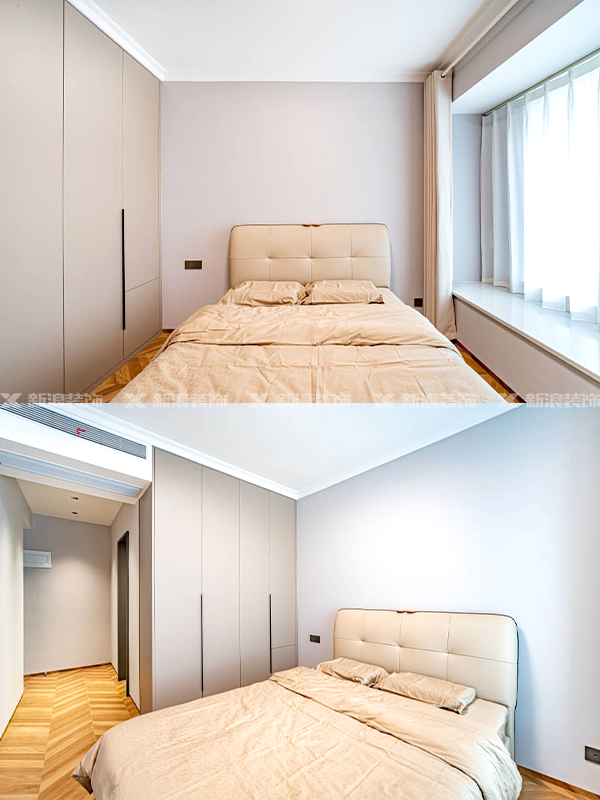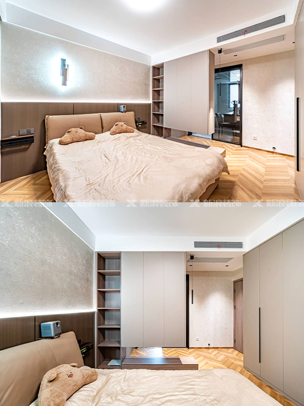 ?主臥大套間,整面墻做收納衣柜,結(jié)合半墻造型隔斷,讓空間不顯單一。