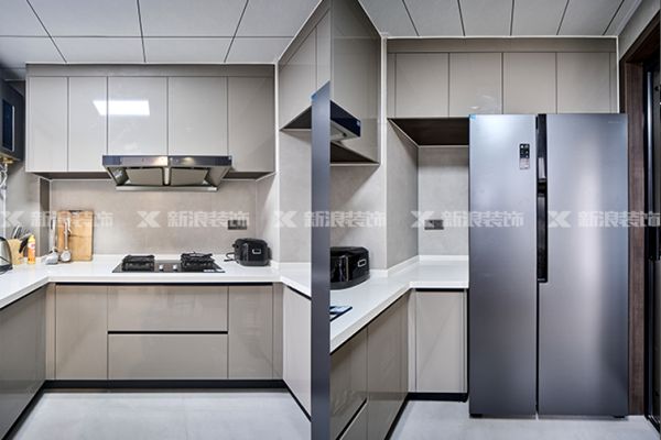 經(jīng)典U型廚房,超晶飾面櫥柜美觀易清潔,大單槽洗鍋更方便。