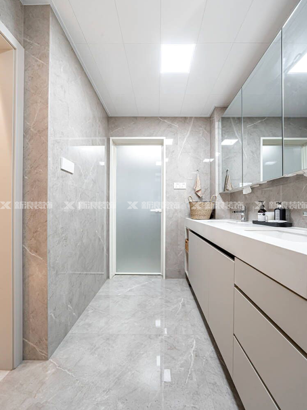 衛生間后推做雙洗漱臺,連接梳妝臺做一體定制