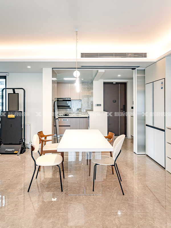 開放式廚房和餐廳相連,巨型四聯動推拉門有效阻擋廚房油煙。?