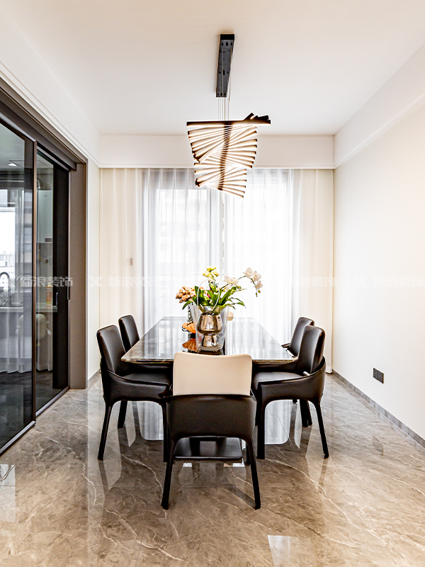 客廳、餐廳、生活陽臺聯通,全開放的公共區域在視覺更寬闊,動線上也非常便利。