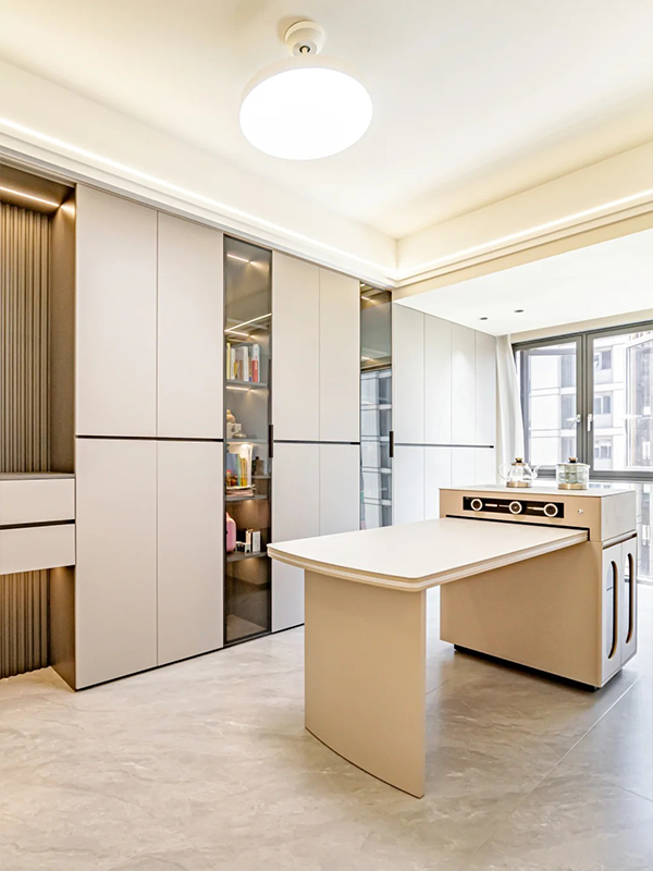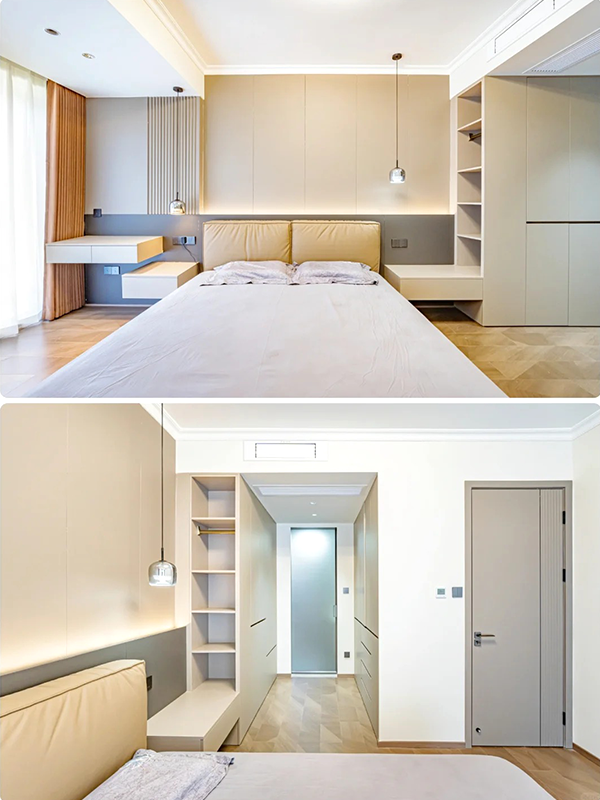 全房定制品做到門、墻、柜同色同造型,分段設(shè)計(jì)造型簡潔好用。