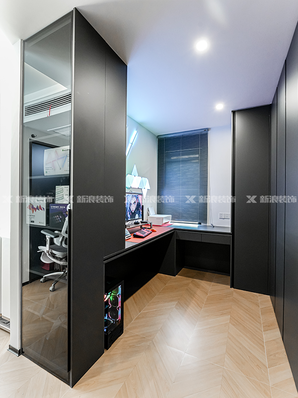 客廳做投影設計,電視背景簡約留白,沙發選雙面的,開放式書房+客廳,舒適耐看。