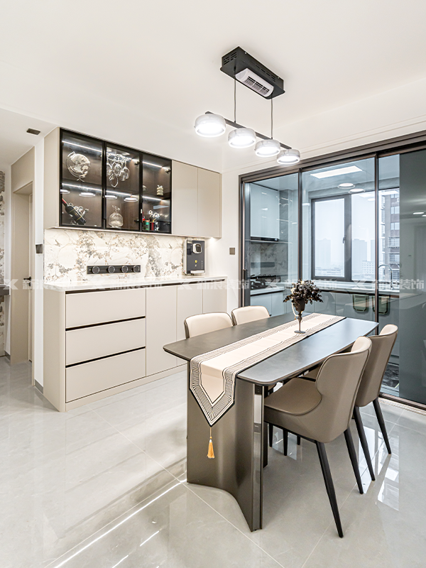 客餐廳不做復雜燈飾,主燈+氛圍燈帶裝飾,讓空間開闊,視野明亮