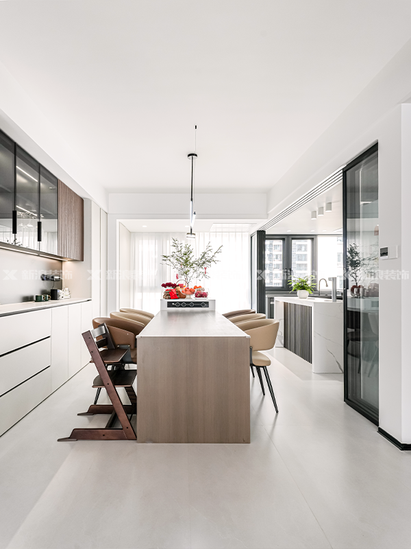 通過吊軌四聯動玻璃門打造靈活多變的廚房空間,動線流暢,家人之間也能更多互動。