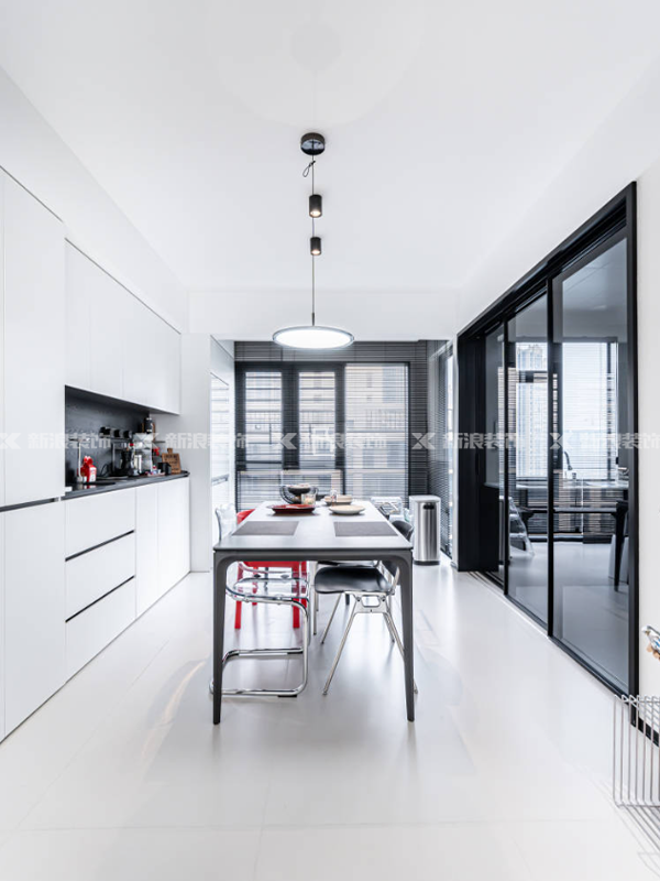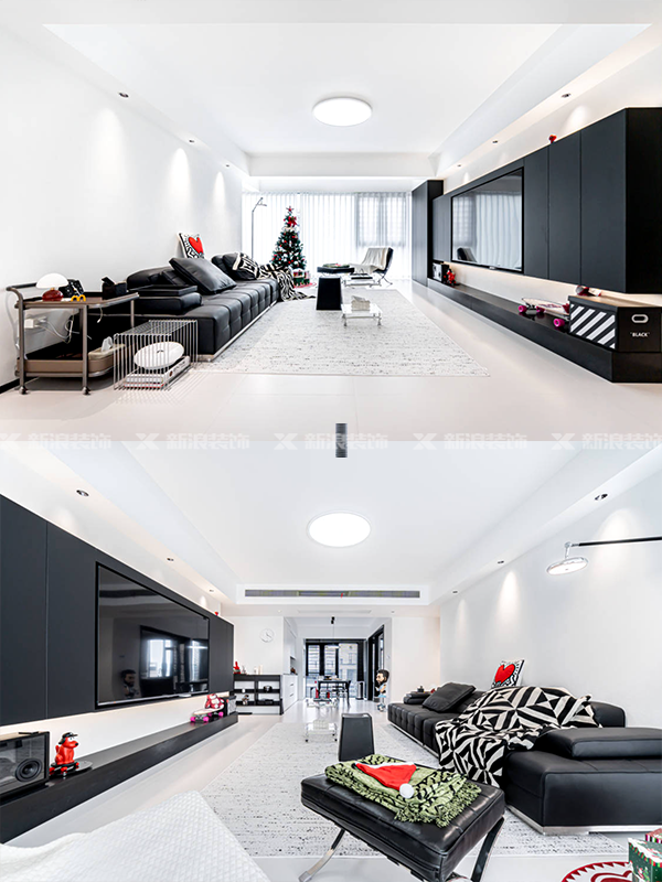 搭配簡約有質感的黑白兩色軟裝,空間靈動不壓抑。