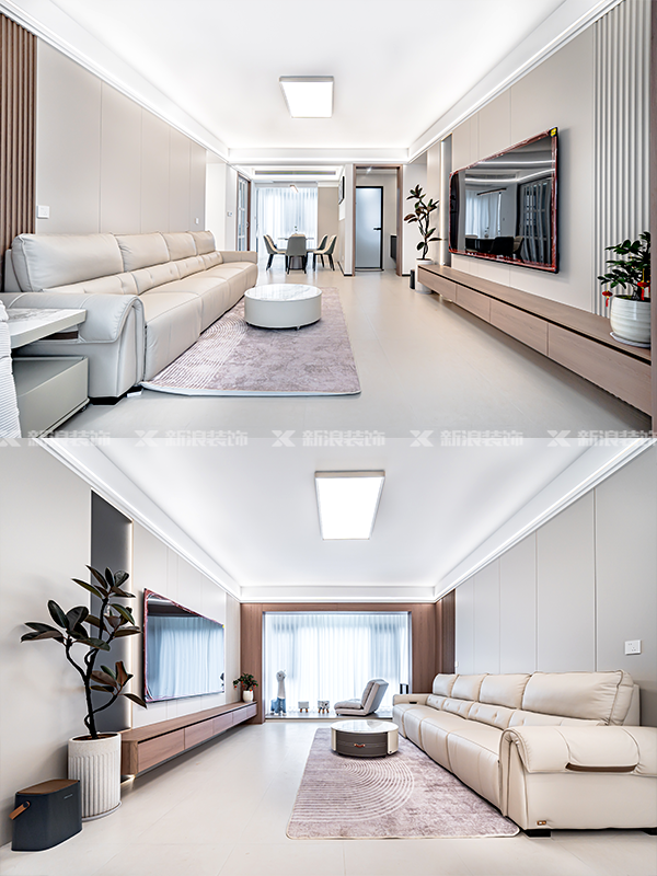 客廳整體色調(diào)以簡(jiǎn)約的淺灰和棕木色為主,簡(jiǎn)約邊吊搭配線燈點(diǎn)綴,不做過度裝修,耐看實(shí)用。