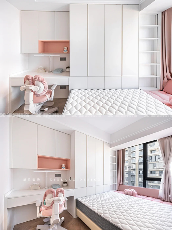 長沙裝修,新浪裝飾,常德裝修,衣柜書桌一體,家居多功能房,女孩房軟裝,裝修風格,麗爾曼頓高端全屋定制,室內設計,現代風格