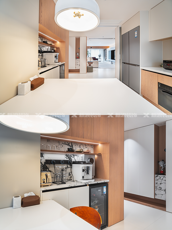 開放格+封閉柜結合,水吧臺、杯具、雜物各有專屬位置,收納強迫癥患者的福音!