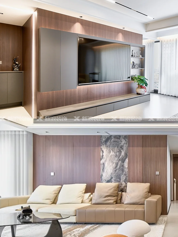軟包皮革拼接木飾面,觸感溫潤治愈,窩在沙發(fā)里秒變電影主角