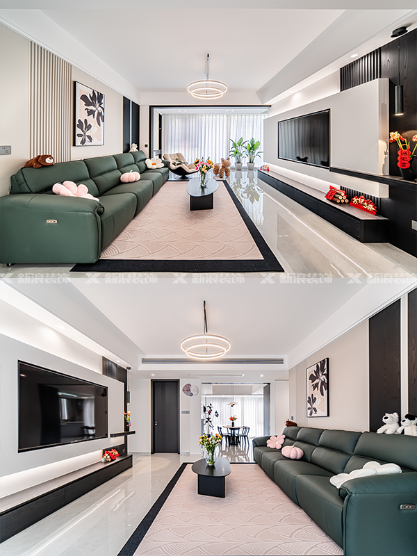 電視墻用懸浮背景+落地柜體,無死角打掃+氛圍感拉滿,晚上開燈瞬間變身雜志風展廳!