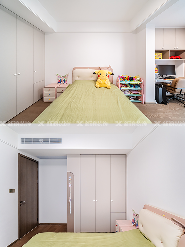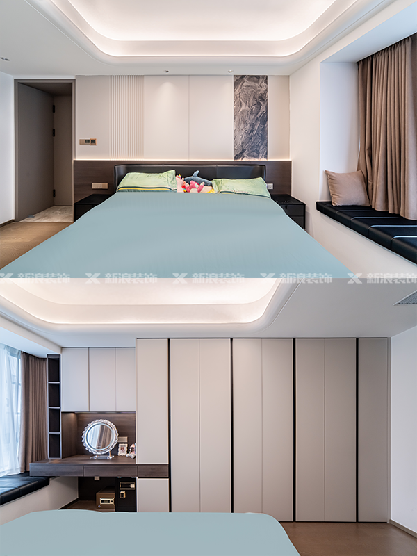 主臥做套間設(shè)計(jì),衣帽間+床尾衣柜梳妝臺(tái)一體設(shè)計(jì),收納空間非常充足。