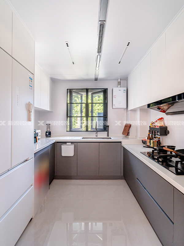 ·全屋配色整體以灰白為主調(diào),沉穩(wěn)的摩卡棕橡柜體搭配純凈的珍珠白柜門,一深一淺碰撞超有層次感。