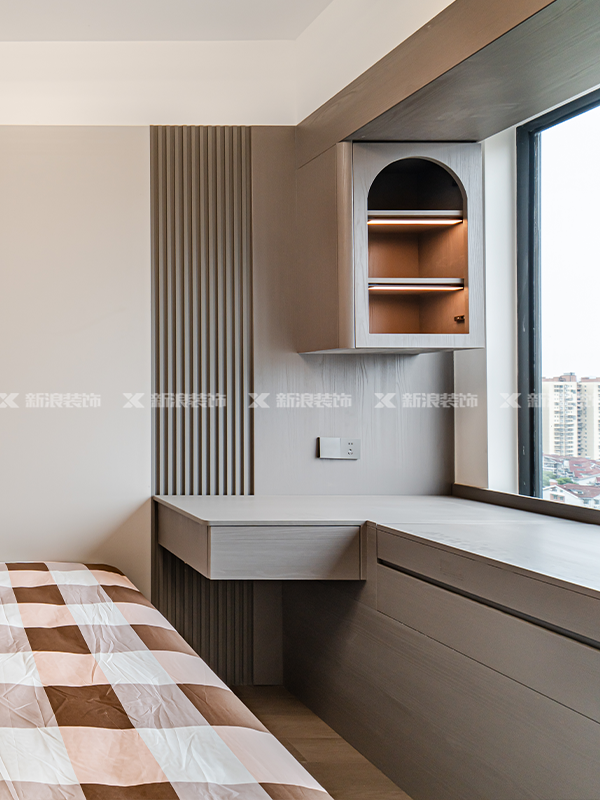 ·整個飄窗用木飾包裹,搭配懸浮展示柜,獨特的同時又很實用